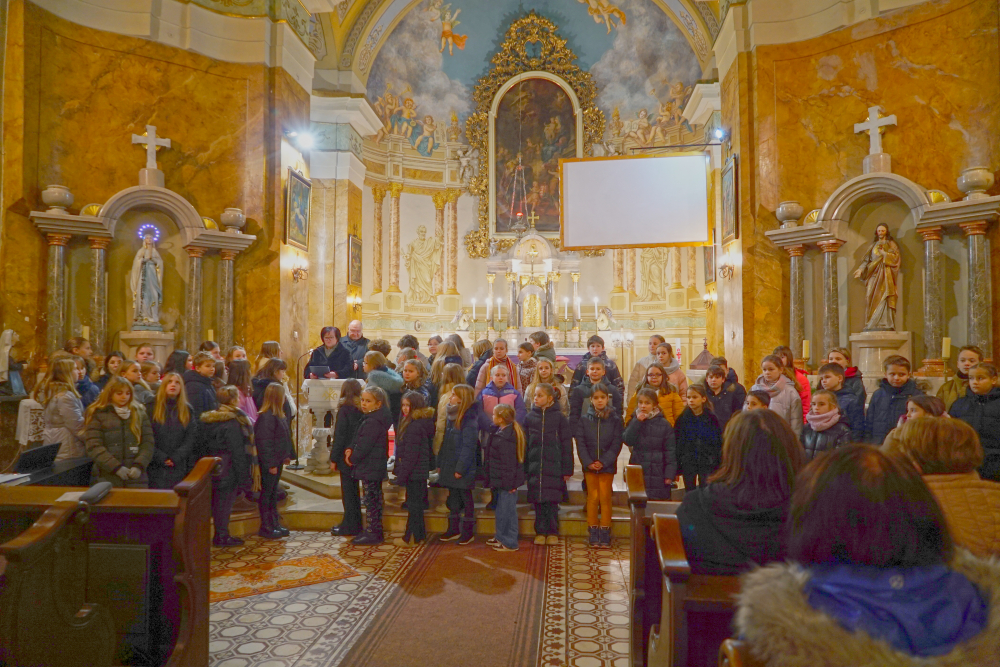 A Park Utcai Katolikus Általános Iskola Kicsinyek kórusa és Pro Musica kórus gyönyörű adventi dallamokkal és égi angyali hangzással ajándékoztak meg bennünket a 2025. december 10-én a Zárda templomban megrendezett Adventi hangversenyen. Az összkarban Iváncsits Tamás: Szeretet himnusza c. szerzeményét száznál több gyermek énekelte, megékesítve ezzel az ünnepi felkészülés fényét. Gratulálunk minden éneklőnek és hangszeres kísérőnek. Köszönjük szépen a felkészítést a kórusvezetőknek: Koleszárné Győrki Gizellának és Balogh Valéria Szilviának.