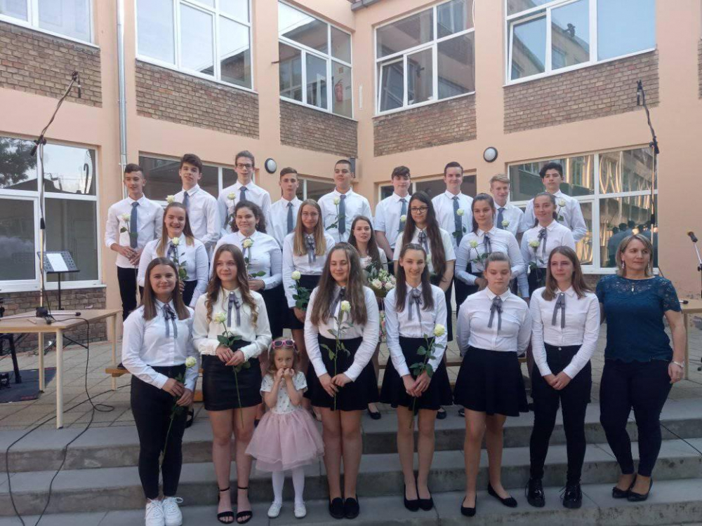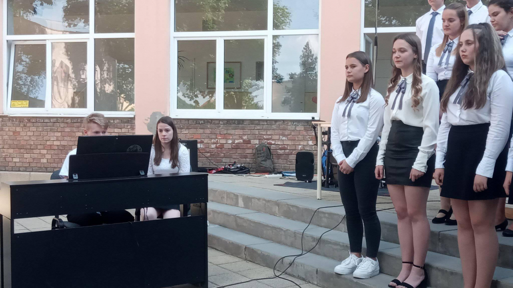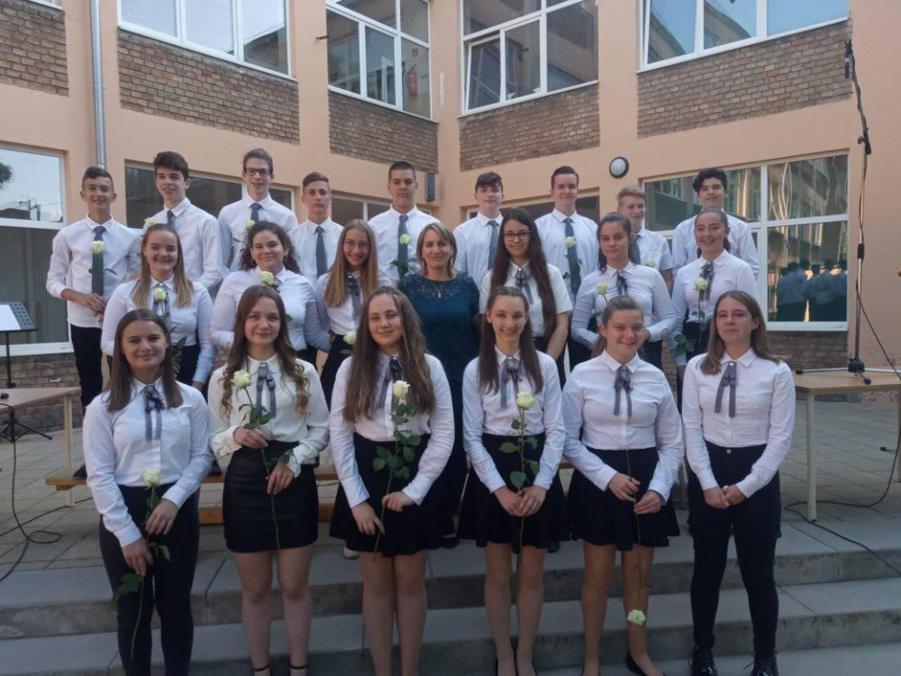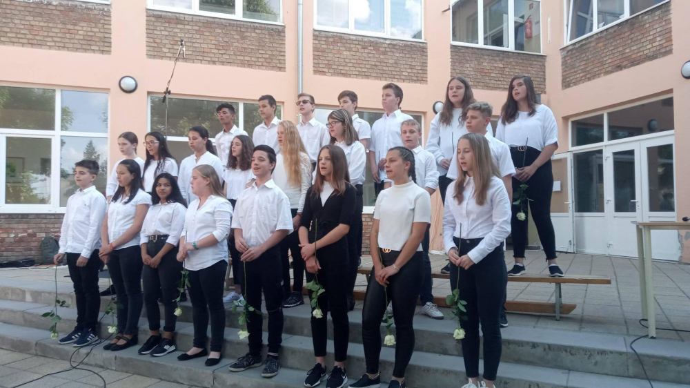Igazgatónőnk, Grátz Ádámné köszöntője után Horváth Dorina éneke nyitotta meg a hangversenyt. Ezután a 7.c osztály a Retro Electro kíséretében búcsúzott a 8.c-től. A műsort folytatta a 8.c osztály, akik most adták elő az elmaradt Osztályéneklési Fesztiválra készült népdalcsokrot, kánont, többszólamú művet. A mai dalokat kísérte: Keszler Péter, Hidasi Tibor és Belló Zalán. A hangversenyt tovább színesítette Kovács Dorka (7.c), Ritter Viktor és Staub Csanád(8.c) előadása. A szólóénekes és hangszeres gyerekek felkészítő tanárai: Filákovityné Verőci Alexandra, Dobos József és Radnai Tamás.