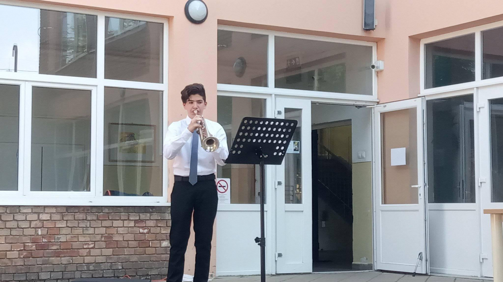 Az idei lépcsőházi hangversenyünk rendhagyó módon a járványügyi intézkedések miatt az iskolaudvaron került megrendezésre.