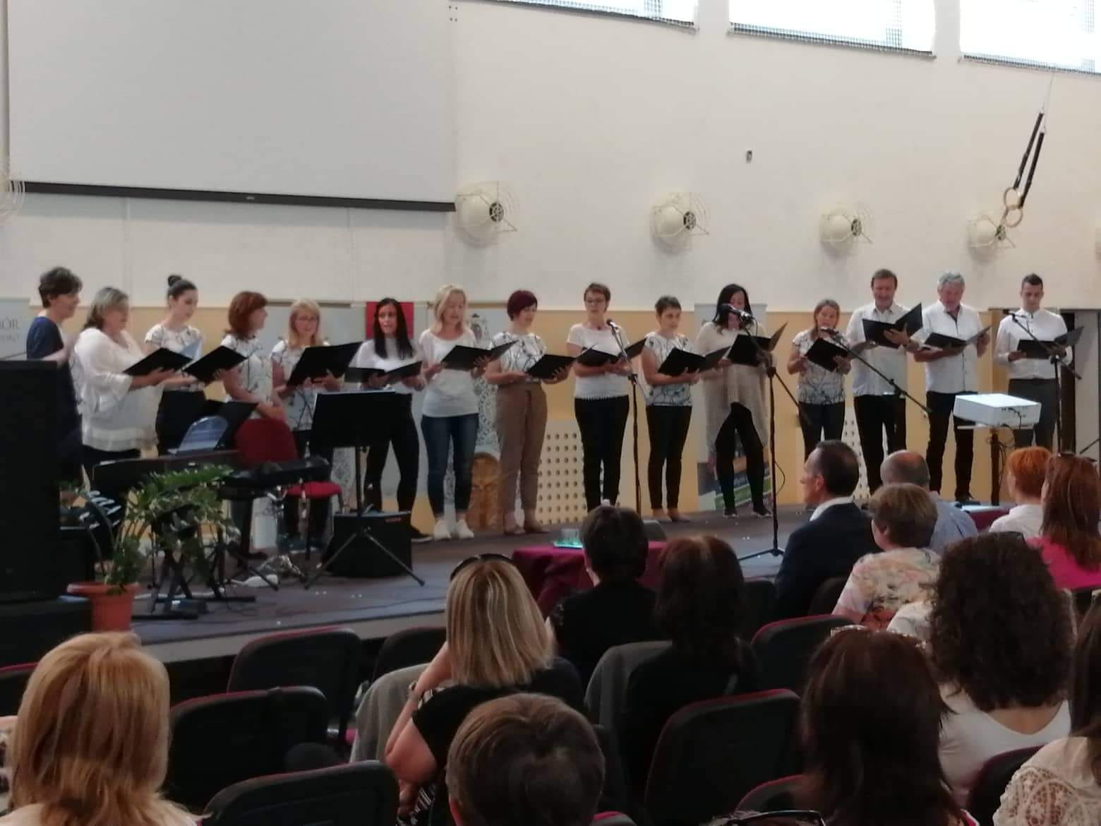 Iskolánk Kicsinyek kórusa, a Stella Maris kamarakórus és a Primavera pedagógus kórus is koncertet adott a mai napon a pécsi Szent Mór Iskolaközpontban megrendezett Egyházmegyei Pedagóguskonferencián.