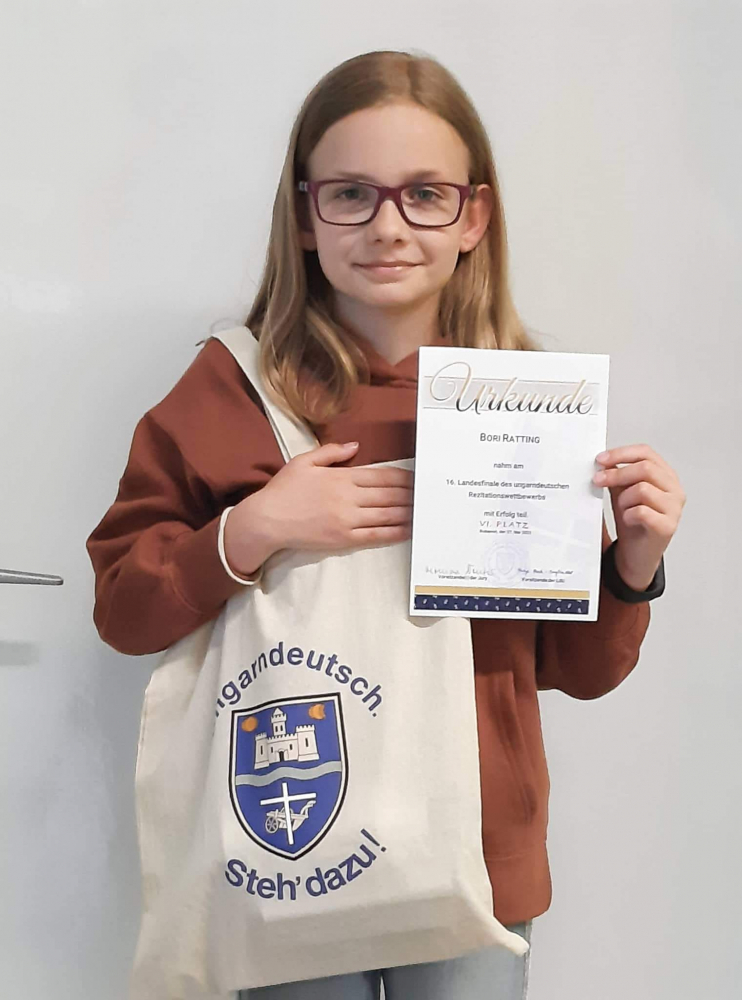 Május 27-én került megrendezésre az Országos német vers-és prózamondó verseny, ahol Ratting Bori 4.a és Buják Lilla 6.a osztályos tanulók képviselték iskolánkat. Mindketten nyelvjárás kategóriában indultak és nagyon ügyesen szerepeltek! Lilla IV. , Bori pedig VI. lett!