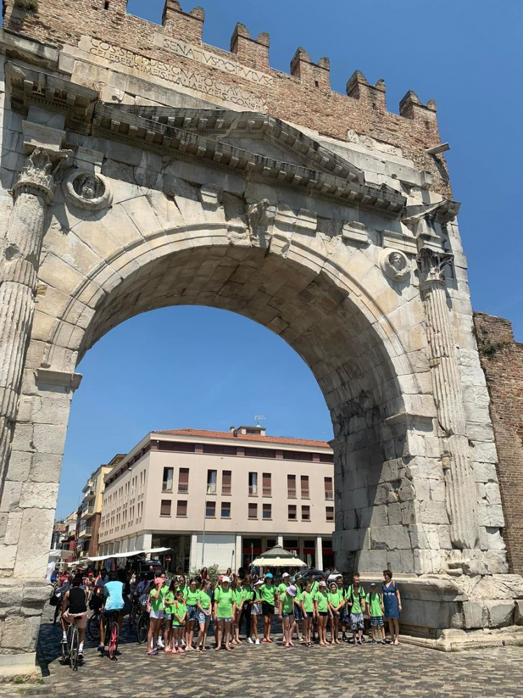 Városnézés során Augusztus császár diadalíve alatt mentünk át, amelyet korinthoszi oszlopok kereteztek és római istenség szobrai díszítettek. Tiberius ötívű kőhídjáig- ami a Marecchia folyó ágát szeli át- sétáltunk el a tikkasztó melegben.