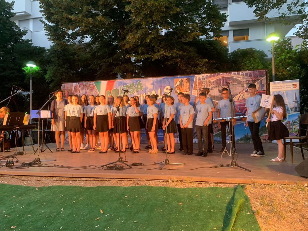 Szabadtéri fesztivál műsorunkat a mohácsi népdalcsokorral kezdtük, Bárdos Lajos, Karai József és Steiner Béla kórusművekkel, Thomas Tallis: Sussurra il vento olasz nyelvű kánonnal folytattuk és végezetül Hans Sanding: Pony Hopp ritmushangszerekkel színesített vidám dalával zártuk. Zongorán kísért: Horesnyi Mónika, vezényelt: Koleszárné Győrki Gizella. Elnyertük a közönség szeretetét, amihez az is hozzájárult, hogy a szereplők közül mi voltunk egyedül Gyermekkórus.