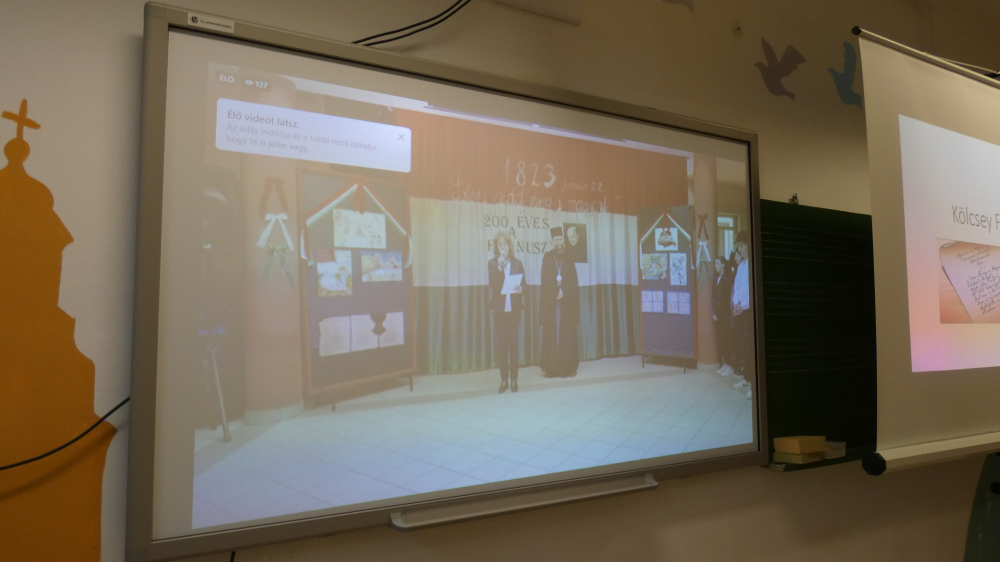 Ebből az alkalomból iskolánk csatlakozott a nyíracsádi Szent Piroska Görögkatolikus Általános Iskola felhívásához. Közel 120 tanulónk élő videóközvetítéshez kapcsolódva az ország 30 ezer iskolásával együtt szavalta el nemzeti imádságunkat.