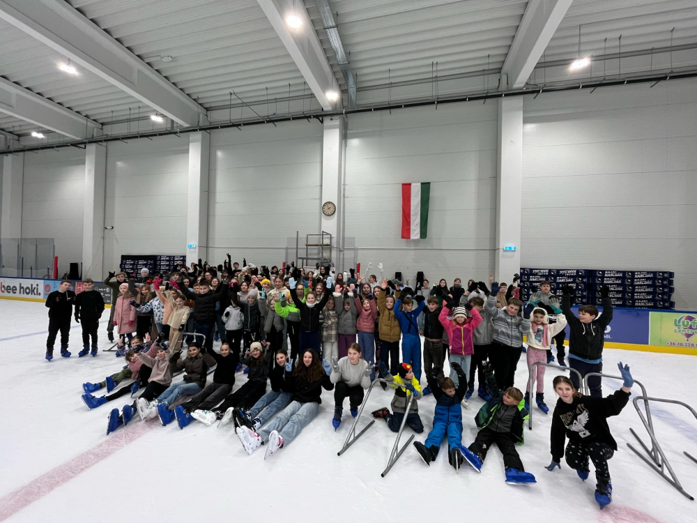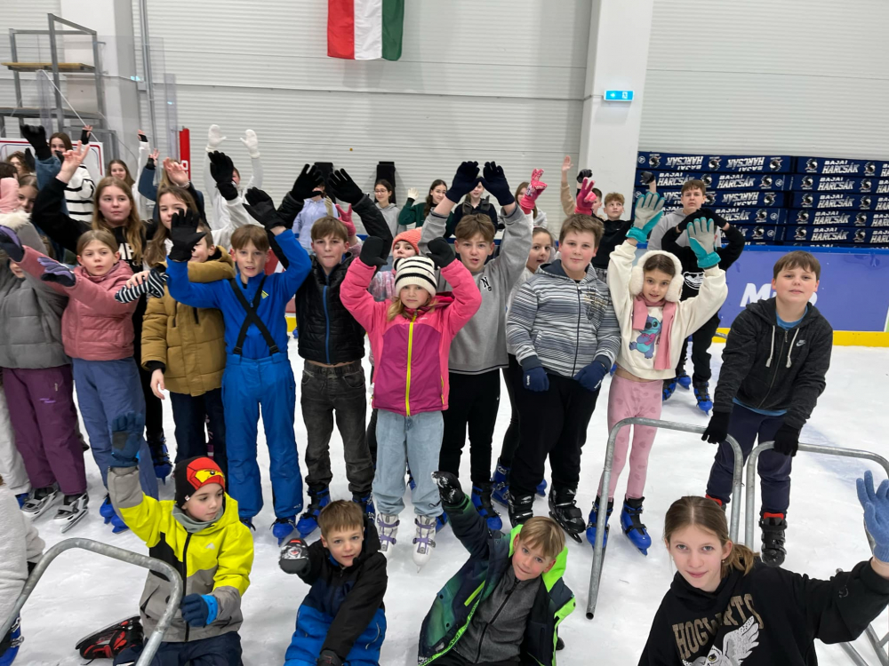 Új helyszínen de a megszokott vidám hangulatban telt a 2024/25-ös tanév iskolai korcsolyázása!