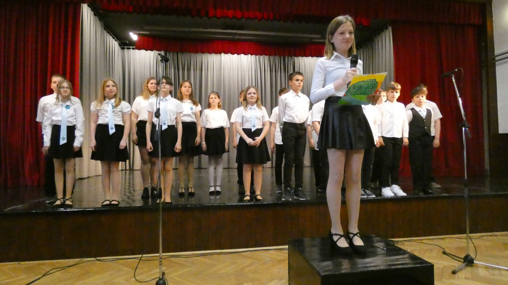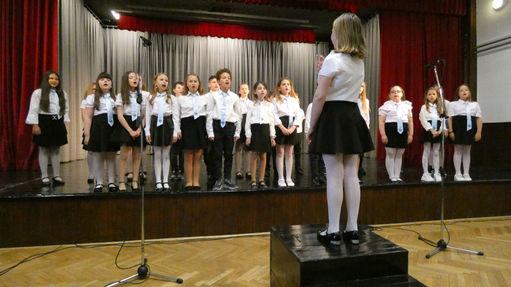 Iskolánk 2025. április 30-án Osztályéneklési Fesztivált rendezett, melyet a 2.c osztály nyitott meg népi