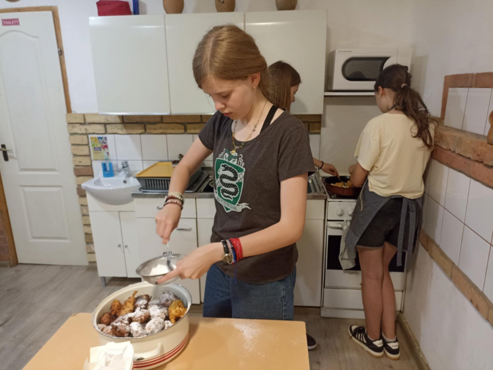 Mindenki érdeklődéssel hallgatta a templom és a falu történetét, ismerkedett a svábok ételeivel és a gyógynövényekkel, fűszernövényekkel a fűszerkertből valamint a vályogtégla és a kenyérlepény készítés rejtelmeivel. Örömmel töltötte el e csoportot, hogy lovaskocsival körbejárhatták a környéket, túráztak a szurdokokban és részt vettek egy játékos ügyességi sorversenyen, ahol szintén előkerültek a régi használati tárgyak, eszközök. Készítettek még levendulával kitömött illatzsákot, szőttek szövőkerettel és megtanulták a keringő lépéseit. Az utolsó napon a marázai kápolnához zarándokoltak és közösen imádkoztak. A táborozás ideje alatt finom sváb ételeket ettek és sokat játszottak együtt. Élményekkel gazdagodva tért mindenki haza.