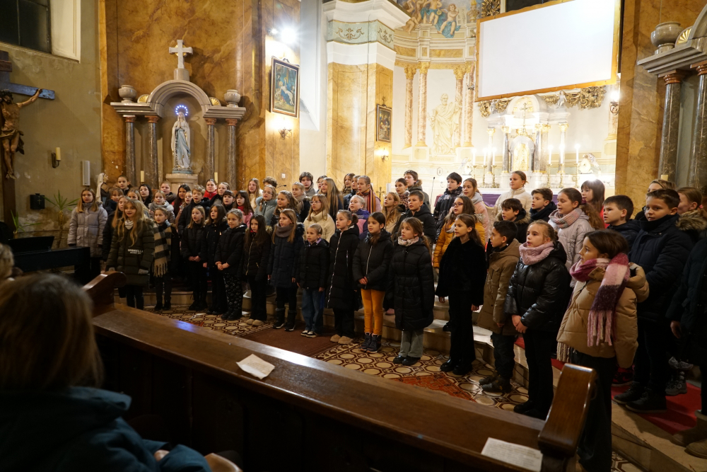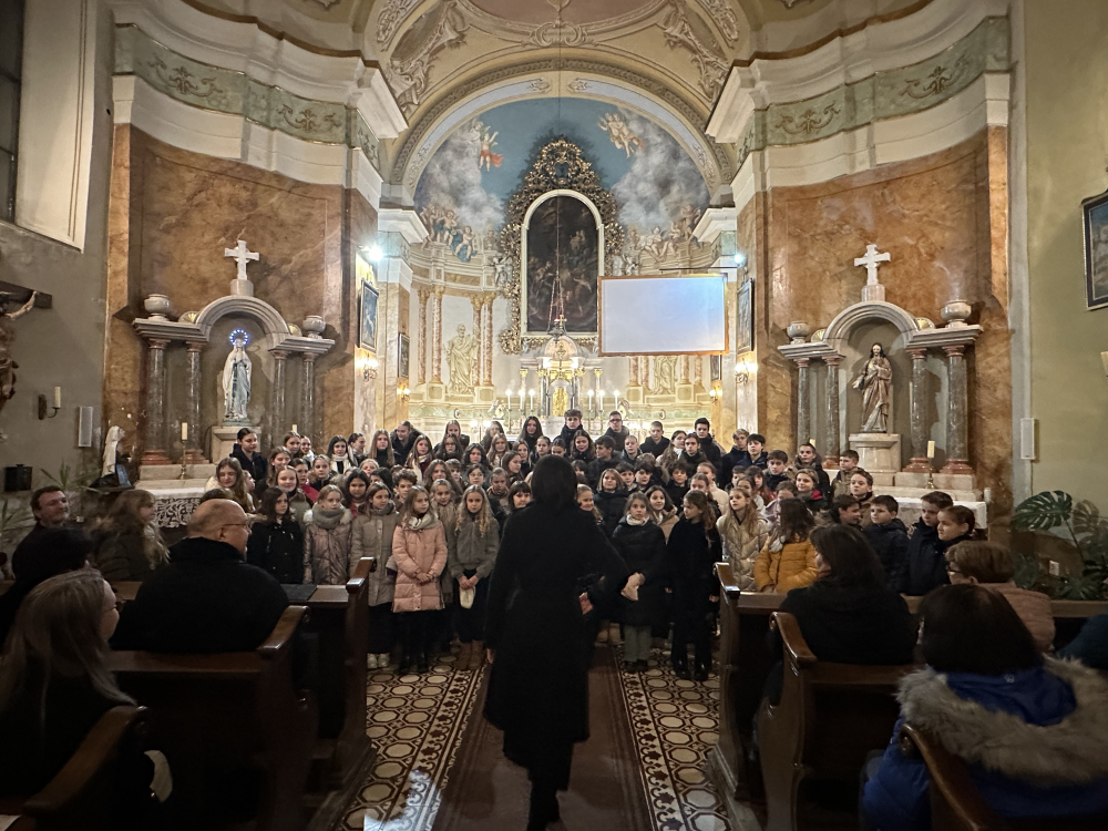 A Park Utcai Katolikus Általános Iskola Kicsinyek kórusa és Pro Musica kórus gyönyörű adventi dallamokkal és égi angyali hangzással ajándékoztak meg bennünket a 2025. december 10-én a Zárda templomban megrendezett Adventi hangversenyen. Az összkarban Iváncsits Tamás: Szeretet himnusza c. szerzeményét száznál több gyermek énekelte, megékesítve ezzel az ünnepi felkészülés fényét. Gratulálunk minden éneklőnek és hangszeres kísérőnek. Köszönjük szépen a felkészítést a kórusvezetőknek: Koleszárné Győrki Gizellának és Balogh Valéria Szilviának.